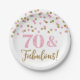 70 e placas de festa de aniversário fabulosas com um confete de padrão brilhante dourado e rosa.
