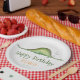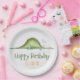 Ilustração de um enorme e engraçado dragão que descansa calmamente no chão. Personalize facilmente esta placa de papel com o seu próprio texto.