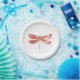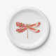 Articulado artificialmente, ouro, libélula joalhada com vermelho e asas decoradas com cereja japonesa vermelha, florescente e joalhada sobre fundo branco. Dourada Dragonfly.