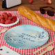 Elevate your celebration with this serene and artful baptism paper plate. The design showcases a misty watercolor forest landscape accented by elegant blue roses and a golden cross symbol. These durable plates provide a beautiful and thematic focal point for a baby boy’s christening luncheon or reception.
