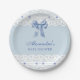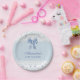 Prato De Papel Dusty Blue Regency Pérola Cetim Laço Baby Shower