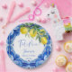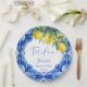 Este é Amore Blue Maiolica azulejos limões vintage chá de panela italiano monograma personalizado pratos impressos modelo, chá de panela mediterrânico chá de panela cítrico mesa