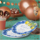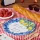 Prato De Papel É mais azulejo azul, limão, chá de panela italiano
