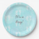 Prato De Papel É um garoto, pegadas de bebê Chá de fraldas azul