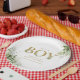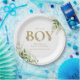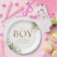 Prato De Papel É um Menino Folhagem Verde Letras Douradas Chá de