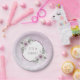 Rosas de aquarela Mauve é uma placa de chá de fraldas menina com toques de lavanda, massa e sage verde.