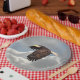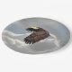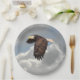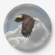Uma fotografia de uma águia americana bonita que sobe contra um céu nebuloso azul. Combine estas placas com os guardanapo de papel com a mesma imagem para ajustes de lugar coordenados em seu partido ou evento seguinte.