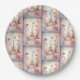 Paper plates with a stylized Eiffel tower image surrounded by pretty butterflies and delicate garden flowers.
