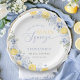 Pratos de papel elegantes com limões aquarela e florais azuis suaves. Perfeitos para um chá de noiva de verão, combinando praticidade com design inspirado no Mediterrâneo.