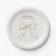 Placas de papel de design simples de laço branco para chás de panela de noiva.