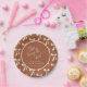 Ela Está Amarrando o Nó Pratos de Papel Personalizados para Chuveiro de Noiva em Terracota + Paleta Areia. Estilo de caligrafia manual elegante com um padrão de arco fofo por toda parte. Basta personalizar o modelo com o título e a data do seu evento. © Kimbellished, LLC