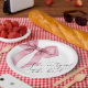 Prato De Papel Ela está dando o nó no Arco Rosa Chás de Noiva