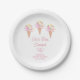Esta placa de papel do chá de panela com o tema do sorvete é decorada com florais de aquarelas e cones de sorvete. O texto diz: "Ela foi enfiada!" na tipografia de script rosa-na moda. Facilmente personalizável. Original Watercolor © Michele Davies.