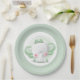 Um adorável elefante bebê com orelhas verdes e um arco verde na cabeça sobre fundo verde estão nestas placas de papel em 2 tamanhos e 2 formas. Diversão para chá de fraldas, festa de aniversário ou qualquer ocasião especial neutra em termos de gênero. Também disponível em rosa e azul. CORRESPONDENDO a itens na nossa loja.