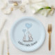 Elephant Love Blue Heart Balloons Plate de Papel Design com texto personalizável e sua escolha de cor de fundo.