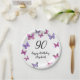 This pretty and elegant 90th birthday paper plate is perfect for a nice party and will set a celebratory tone. The pink and purple butterflies will add a feminine touch to a milestone birthday celebration. Customize the design with a name to personalize it.