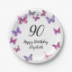 Prato De Papel Elegant 90th Birthday Butterflies Custom Name
