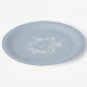 Elegant blue floral crest monogram wedding Paper Plate featuring a delicate vintage botanical wreath surrounding a customizable monogram. Perfect for cocktail hour, wedding receptions, engagement parties, rehearsal dinners, and bridal showers.