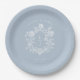 Elegant Blue Floral Crest Monogram Wedding Paper Plate.