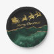 Prato De Papel Elegant Green Gold Santa Sleigh Merry Christmas