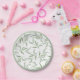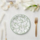 Elegant paper plate design with hand painted watercolor pattern featuring pale sage green leaves on a clean white background.