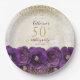 Prato De Papel Elegant Purple Floral Gold 50th Birthday Party