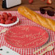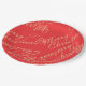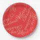 Prato De Papel Elegant Script Merry Christmas Pattern/ Red & Gold