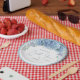 Prato De Papel Elegante Buquê Floral Azul Empoeirado