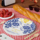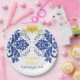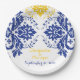 Prato De Papel Elegante damask motif royal blue, casamento amarel