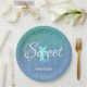 Prato De Papel Elegante Doce 16 Brilho Azul Teal Personalizado