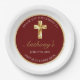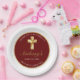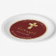 Diga obrigado a convidados, amigos e família com esta Elegante Dourada Primeira Comunhão, Obrigado Plate do Partido. Este design apresenta uma cruz ouro contra um simples fundo vermelho. Personalize a fonte e a cor e altere o texto e a data para atender às suas necessidades.