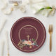 Prato De Papel Elegante Dourado Burgundy Floral Baby Christening
