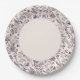 Chapas de papel bonito e elegantes, com uma borda profunda de minúscula paisagem floral, num fundo creme.