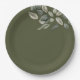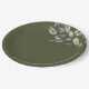 Pratos de papel elegantes para casamento com detalhe sofisticado de folhagem verde suave da Ricaso