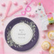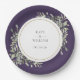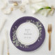 Com delicadas folhas de aquarela em um fundo roxo, este prato de papel botânico elegante pode ser personalizado com os detalhes do seu dia especial de casamento. Projetado por Thisisnotme©