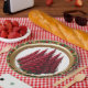 Prato De Papel Elegante Red Wreath Berries, árvore Dourada de Nat