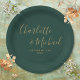 Elegantes placas de papel esmeralda verde e dourado personalizadas com nomes de estilo de assinatura e data de casamento especial. Projetado por Thisisnotme©