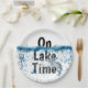 Peixe grande em água azul do lago com texto "no tempo do lago".