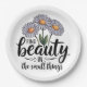 Aquarela pintou flores margaridas design com "Encontrar beleza nas pequenas coisas" nesta citação inspiradora.