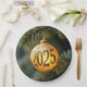 Um ornamento de ouro com "2025" está pendurado em um galho de pinheiros verdes, irradiando um brilho quente.
