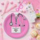 Placas médicas cor-de-rosa para festas de formatura de enfermagem ou eventos hospitalares. Editar texto para personalizar.