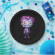 Chapas de papel com uma ilustração fofinha. Monstro de Frankenstein com cabelo rosa e roxo e um terno e gravata.
