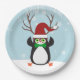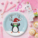 Prato De Papel Engraçado Hipster Pinguim de Natal com galhos