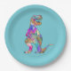 Prato De Papel Engraçado T Rex Psychedelic Dinossauro Colorido