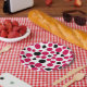 Prato De Papel ervilhas negras vermelhas, retrô do fundo branco