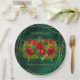 Prato De Papel Esmeralda e geometria Dourada com Florais Vermelho