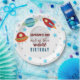 Tema de aniversário espacial infantil. É fácil personalizar. Também disponível como um convite para download digital! Primavera, festas de verão nave espacial, planetas, lua, estrelas, nave espacial alienígena, fonte de script de rico divertido