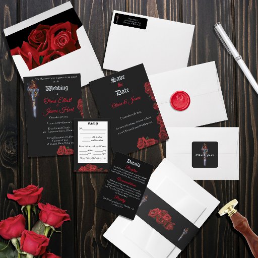 Bold Black Fantasy Dragon Sword Red RosesCriado por Kari-Ann Anderson