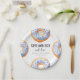 Espelhado com convite para chás de fraldas de rosquinha amorosa. Ilustrações de aquarela e texto com letra manual. Parte de uma coleção.