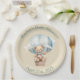 Este design apresenta um ursinho de pelúcia bonitinho sentado no cesto mais vestido de um balão de ar quente. Ele está vestindo um cachecol azul para mantê-lo aquecido. Personalize esses pratos bonitos com o nome da mamãe e a data do chá de fraldas, com o botão personalizar fácil de usar. Itens de parte coordenadora e uma variedade de designs correspondentes estão disponíveis em nosso compro!